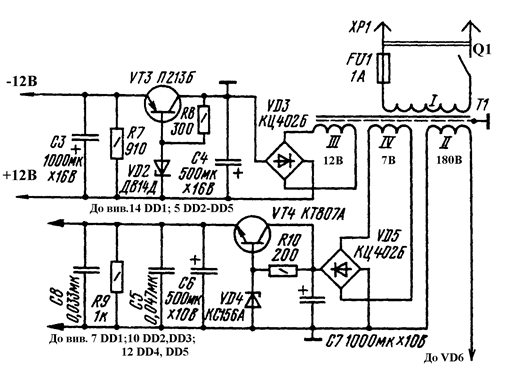 де Uж - напруга живлення, В; R=R1=R2, МОм; C=C1=C2, мкФ.