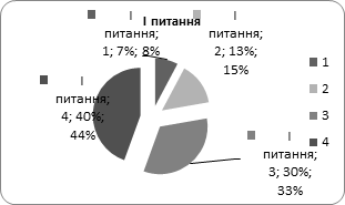 Відповіді студентів у вигляді таблиці (по запитанням) та діаграми.