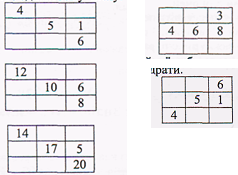 Розминка. Діти, на минулому уроці ви розгадували загадки, самостійно розгадували ребуси. А сьогодні будемо заповнювати магічні квадрати. (Учні отримують інформацію про те, як заповнювати магічні квадрати).