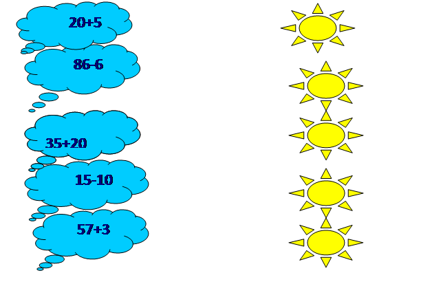 Відшукай правильну відповідь і з’єднай стрілочками хмаринки з сонечками.