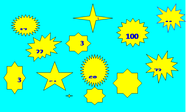 Розгляньте зірочки. Встановіть закономірність між цифрами і виберіть зайві (позначте червоним кольором)