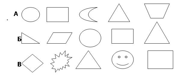 2: Вибери рядок у якому усі фігури є геометричними. ( )