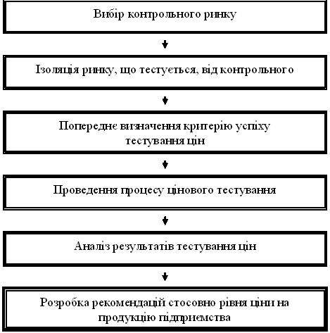 У цілому, використання тестування цін у процесі оцінки поведінки споживачів на ринку сприяє внесенню нових пропозицій при формуванні та коригуванні ціни на продукцію. Корисність даного тестування полягає в тому, що при його проведенні підприємство одержує інформацію про ринок, споживачів і конкурентів, а також про потреби ринку в конкретній продукції. Необхідно мати на увазі, що одержана інформація про те, яка ціна на конкретну продукцію підходить чи не підходить ринку, відображає основне призначення цінового тесту. При цьому в процесі встановлення твердих цін підприємство, при їх попередньому тестуванні, ризикуючи тільки незначною часткою свого сегменту на ринку та свого прибутку, має реальну можливість виявити нові напрями його цінової діяльності в умовах конкурентного ринку.