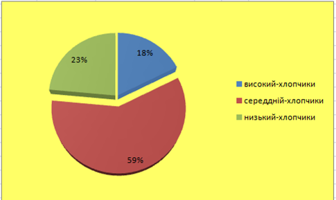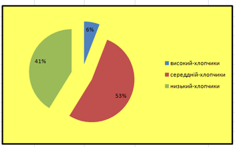 Щоб побачити скільки відсотків хлопців припало на кожен з рівнів, пропонуємо наступну статистику результатів (див. мал. 2)