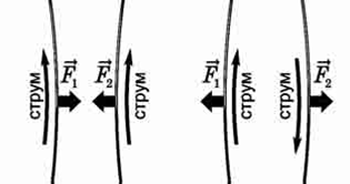 Взаємодія провідників, по яких течуть струми, обумовлена не електричною взаємодією, тому що ці провідники електрично нейтральні.