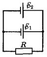 16. Два джерела струму з ЕРС ξ1 = 2 В, ξ2 = 1,5 В та внутрішнім опором r1 = 0,5 Ом та r2 = 0,4 Ом ввімкнуті паралельно опору R = 2 Ом. Визначити силу струму, що проходить крізь опір.
