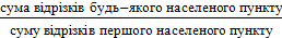 Примітка. У теорії розміщення є ряд методів визначення транспортного освоєння території і доступу окремих центрів. Один з таких методів – розрахунок коефіцієнта транспортно-географічного положення Ктгп території, де розрахунок Ктгп базується на використанні теорії графів. Значення цього коефіцієнта великою мірою впливають на ринковий потенціал центрів роздрібної торгівлі.