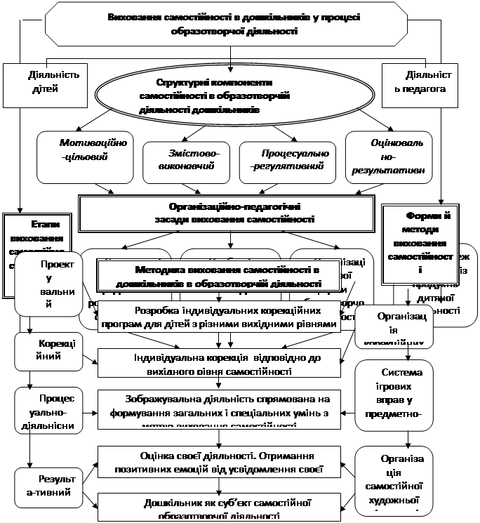 Рис. 1. Модель виховання самостійності дошкільників в образотворчій діяльності