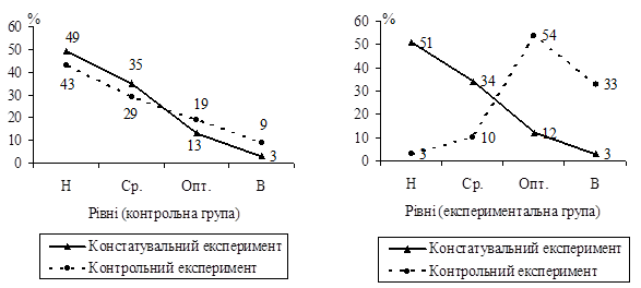 Рис. 2. Динаміка рівнів самостійності старших дошкільників в образотворчій діяльності