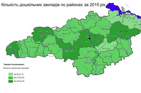Така ситуація пов’язана із високим показником народжуваності у цих районах. Тому і кількість дітей, які охоплені дошкільними закладами у кожному з них є найбільшою і складала майже від 1000 до 1800 осіб.