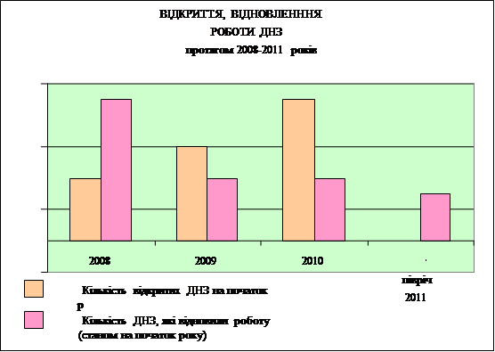 Рис. 3.11. Відкриття та відновлення роботи ДНЗ протягом 2008 - 2011 рр.