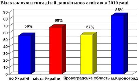 В 2010-2011 навчальному році різними формами дошкільної освіти було охоплено 85 % дітей, що на 2 % більше, порівняно з 2009-2010 навчальним роком. В 2011-2012 навчальному році планується збільшення показників на 4% і, відповідно, досягнення 89 % охоплення дітей дошкільною освітою (рис. 3.12).