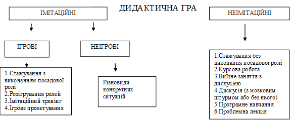 За ознакою відтворення (імітації) контексту професійної діяльності, її модельного уявлення в навчанні всі методи активного навчання діляться на неімітаційні та імітаційні.