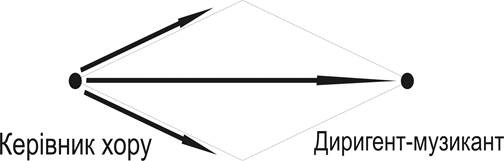 На основі міжлінійної трансляції знань, умінь та навичок комплексної структури диригентсько-хорової підготовки нами визначена графічна проекція основних напрямів диригенстько-хорової підготовки майбутнього керівника хору (див. рис.1.1.)