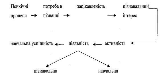 На нашу думку, в процесі підвищення ефективності навчальної діяльності молодших школярів, важливим є виявлення в них динаміки внутрішньофункціональної структури пізнавальної сфери та зміни в ній співвідношень домінуючих факторів, які зумовлюють успішність з навчальних предметів. Детального вивчення потребує пізнавальний аспект структури навчальної діяльності молодших школярів, якість становлення якого в цьому віці є основою їхнього подальшого розумового розвитку. Це можна наочно подати у вигляді схеми.