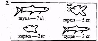 Обчислити загальну масу 6 щук і 3 коропів; 9 карасів і 8 судаків. На скільки більша маса 9 судаків, ніж 3 коропів? На скільки менша маса 7 карасів, ніж 5 щук?