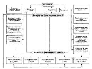 Методика навчання біології тісно пов'язана з біологічними науками. Адже викладання шкільних курсів вимагає від учителя ерудиції в цій і галузі, як теоретичної — для наукового пояснення явищ природи, так і практичної, необхідної для розпізнавання рослин і тварин у природі, їх визначення, вирощування та проведення дослідів із ними.