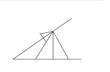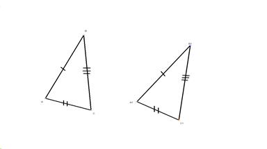Задача. Всередині кута ВАС дано точки D і E. Побудувати рівнобедрений трикутник, основа якого лежить на прямій АС, третя вершина на АВ, причому бічні сторони проходять через точки D і E.