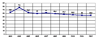 Рис. 1. Динаміка коефіцієнта придатності основних фондів по економіці України