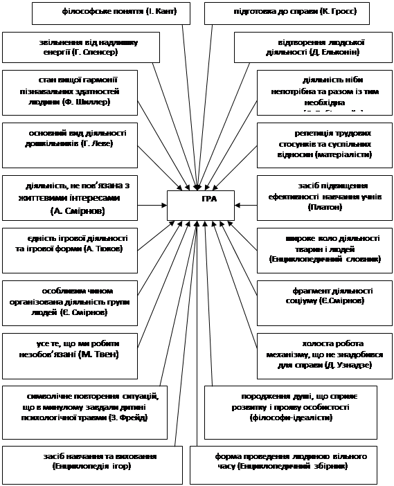 У визначенні гри дослідники виходили з різних позицій (рис. 1.1).