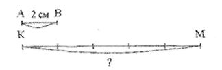 Довжина відрізка АВ 2 см. Він в 5 разів коротший за відрізок КМ. Знайти довжину відрізка КМ.