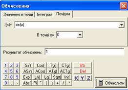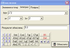 Навчальну систему GRAN з успіхом можна використовувати не тільки на уроках геометрії, а і на уроках алгебри. Як приклад, можна розглянути використання GRAN для обчислення значень визначених інтегралів (мал. 6) та похідних (мал. 7).