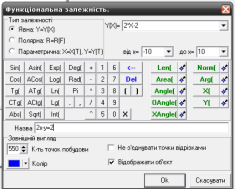 . Для цього виконаємо: Об’єкт → Створення → Функціональна залежність і вводимо відповідні значення у вікні «Функціональна залежність» (мал. 10).