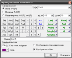 . Для цього виконаємо: Об’єкт → Створення → Функціональна залежність і вводимо відповідні значення у вікні «Функціональна залежність» (мал. 8).