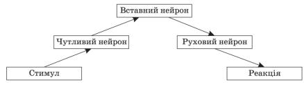 Обладнання й матеріали: таблиці «Типи нервових систем у тварин», «Схема будови нервової системи», «Схема рефлекторної дуги».
