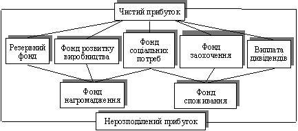 За рахунок чистого прибутку підприємство формувало ряд цільових фондів, кошти яких спрямовували на фінансування певних витрат, задоволення відповідних потреб. Використання чистого прибутку на виплату дивідендів здійснювалося безпосередньо.