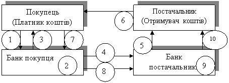 8 — банк покупця переказує банку постачальника суму коштів з акредитива;