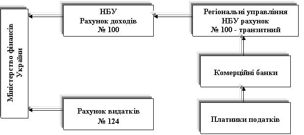 Механізм руху бюджетних коштів при банківській системі виконання державного бюджету за доходами, що почав діяти 1993 року