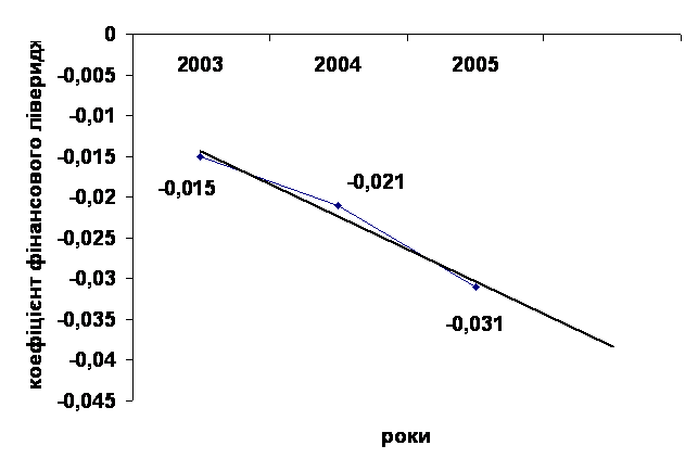 З рисунку 2.3.5 видно, що коефіцієнт фінансового лівериджу ДП „Криворізька теплоцентраль” має від’ємне значення і спостерігається тенденція до його зниження, тобто на підприємстві відбувається накопичення довгострокових зобов’язань.