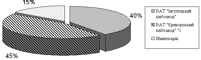 Головними конкурентами ВАТ "Iнгулецький хлiбзавод" складають міні-пекарні, яких у 2006 році у Кривому Розі нараховано близько 15 (рис. 2.2).